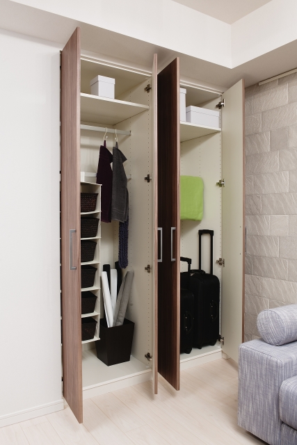 - 人が中に入れる広さがあり、衣類だけでなくバッグや靴、大型の荷物も収納可能。