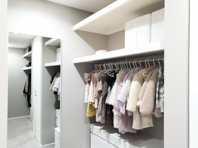 ・ウォークスルークローゼット:出入口が2ヶ所あり、通り抜けることができるタイプです。通気性が良く、カビや湿気を防ぎやすいです。洗面所や寝室とつながる動線を確保すると着替えや収納がスムーズにできます。