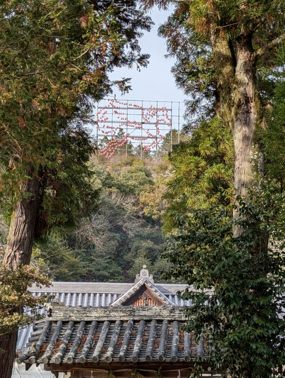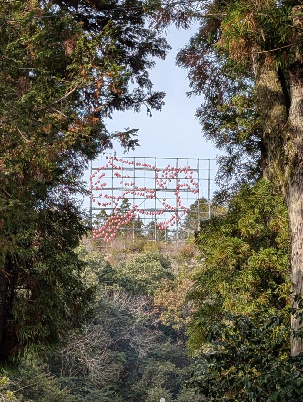 『今年は午年じゃな~』と神社の上に飾られている浮き干支を見ていると、