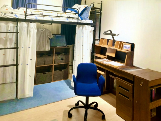 2. ロフトベッドを活用  ロフトベッドを導入することで、限られた床面積を有効活用できます。ベッドの下部にはデスクや収納スペースを配置することで、部屋全体を機能的に使うことができます。ロフトベッドは特に小さな部屋に適しており、スペースの制約を克服するのに効果的です。