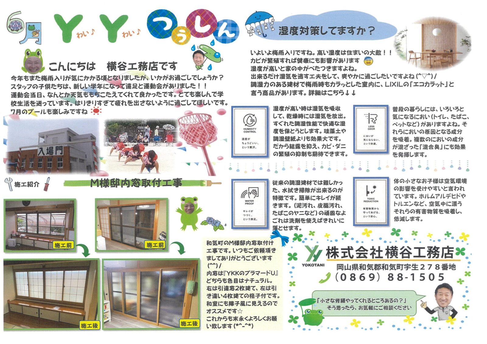 内窓の施工事例や梅雨の湿気対策にエコカラットのお話などを掲載しておりますm(__)m
