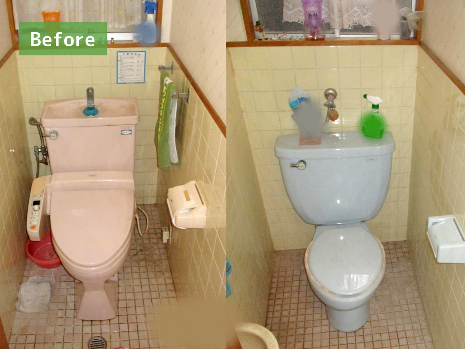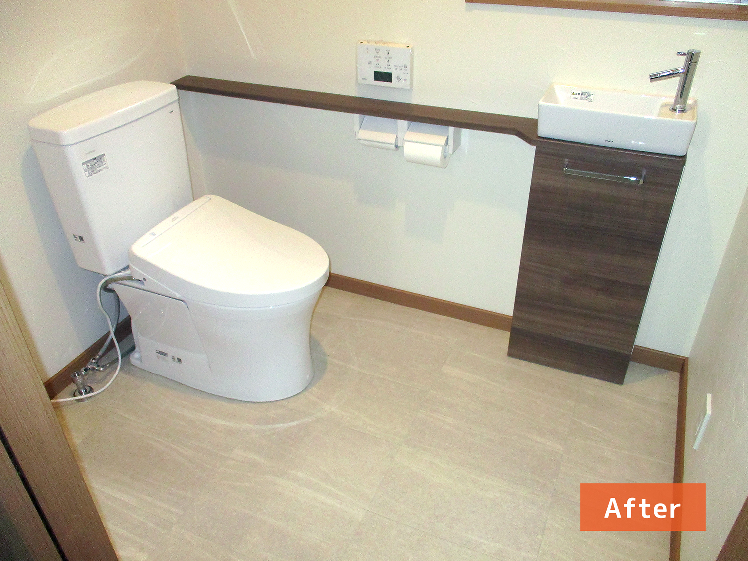 並んだトイレを1つにまとめ、ひろびろとした空間のトイレに変更しました。